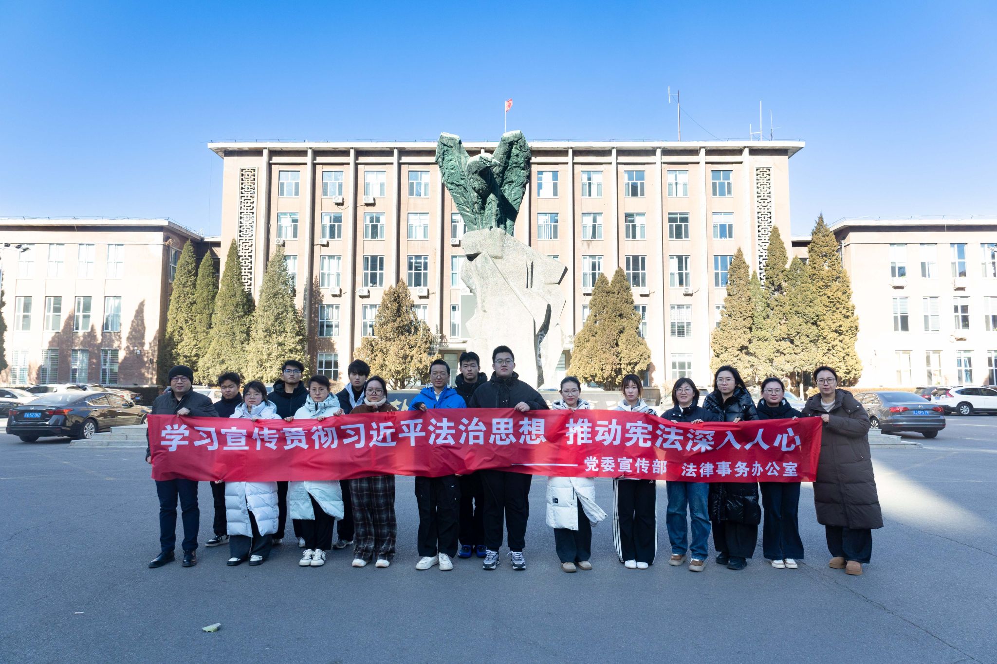 2025年12月4日是第十二个国家宪法日,为深入学习贯彻习近平法治思想,推动宪法精神融入校园生活、扎根师生心田,12月4日,辽宁工程技术大学党委宣传部、法律事务办公室、公共管理与法学院在两校区三校园开展了以“学习宣传贯彻习近平法治思想 推动宪法深入人心”为主题的宪法宣传日活动。